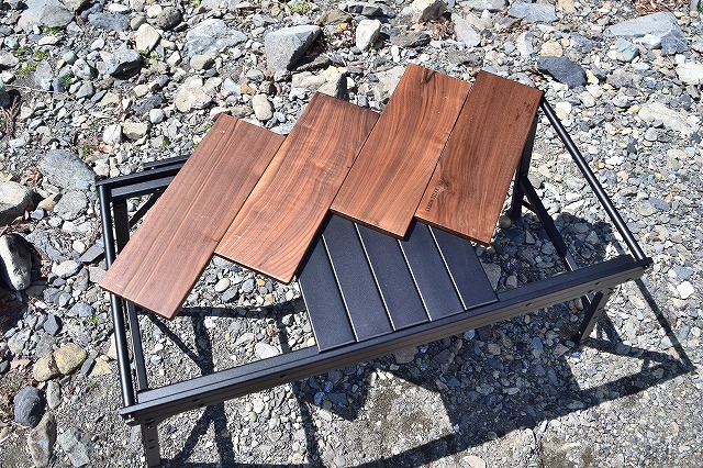 ウォルナット天板4枚とアルミ天板で様々にレイアウト可能です!