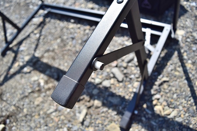 筋交いバーの丸い穴を本体フレーム側の白色の丸い突起に「パチンッ」とはめ込んでてフレームの組み立ては完了。