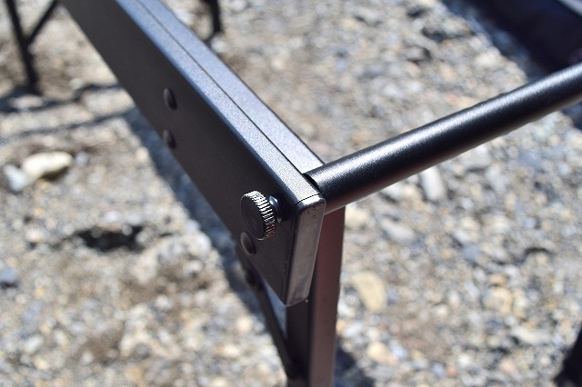 本体フレームとアルミの丸いバー両端をこのネジで留めていきます。