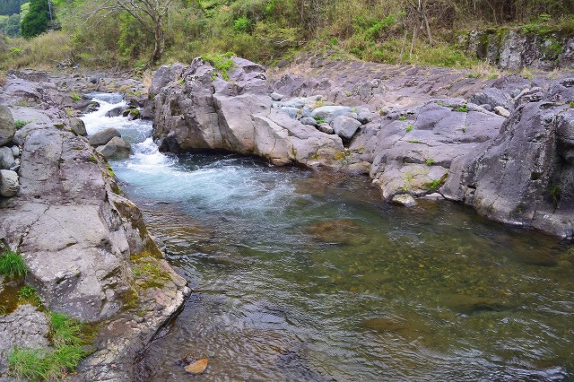 流芯は岩盤と護岸の間を走っており幅は1~2m位になっています