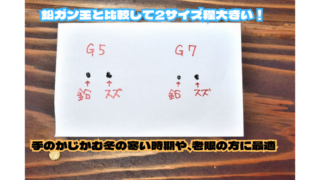 すこし分かりづらいですが実物は明らかに同重量の鉛ガン玉よりもサイズが大きくなってます